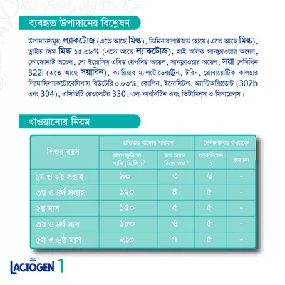 ফর্মুলায় রয়েছে OPTIPRO প্রোটিন, যা শিশুর হজম সহজ করে, এবং DHA, ARA, Iron, Calcium, Vitamin A, C, D, E, যা শিশুর স্বাস্থ্যকর বিকাশ, হাড় ও মস্তিষ্কের বিকাশ নিশ্চিত করে।