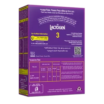 ১২ মাসের পর শিশুর বৃদ্ধি ও বিকাশে প্রয়োজন সুষম পুষ্টি। Nestlé Lactogen 3 Follow-Up Formula BIB (12 Months+) হলো নেসলে’র বিশেষভাবে তৈরি ফলো-আপ ফর্মুলা, যা শিশুর শারীরিক ও মানসিক বিকাশ, হাড় ও দাঁতের শক্তি এবং রোগ প্রতিরোধ ক্ষমতা উন্নত করতে সাহায্য করে।